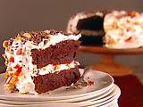 Put 1 cake on a serving plate. Top with 1-inch of the whipped cream crunch mixture. Top with the second layer of cake and continue frosting the entire cake with the remaining whipped cream crunch mixture. Sprinkle the top and sides of the cake with the ground chocolate. Serve.