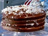 To assemble cake: Place 1 cake layer onto a cake stand or plate. Spread a quarter of the frosting evenly onto the bottom layer. Sprinkle with 1/4 cup of the coconut and 1/4 of the peanuts. Repeat with the remaining 3 layers of cake. Slice and serve.