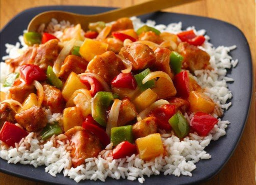 Carefully pour 1 1/4 cups hot water into skillet with chicken; stir in sauce mix (from Chicken Helper box). Return vegetables to skillet. Heat to boiling; reduce heat. Simmer uncovered 3 to 5 minutes, stirring occasionally, until sauce thickens and chicken is no longer pink in center. Stir in pineapple; heat until hot. Serve over rice.
