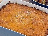 Butter a 9 by 13-inch casserole with the remaining tablespoon of butter and reduce the oven temperature to 375 degrees F.