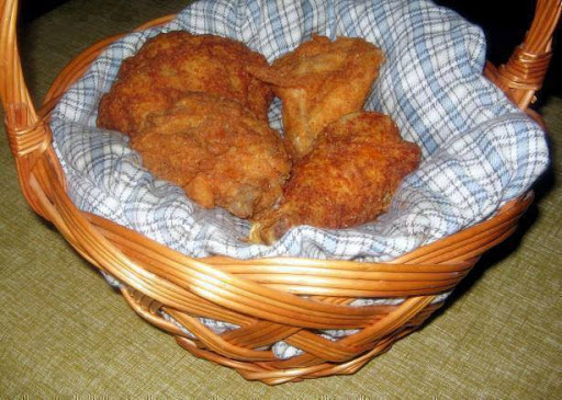 2. Heat the oil in a skillet. Brown the chicken in oil slowly, uncovered. Once browned, cover the skillet and keeping frying on a very gentle heat until the chicken is fully cooked. Place on paper towels to drain out the excess oil.