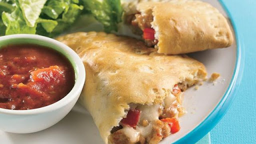 Bake 12 to 15 minutes or until golden brown. Serve warm calzones with warm pasta sauce for dipping.