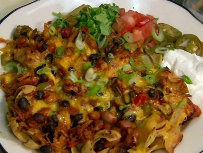 • Corn chips (recommended: Fritos), shredded cheese, shredded lettuce, diced tomatoes, sour cream, sliced jalapenos