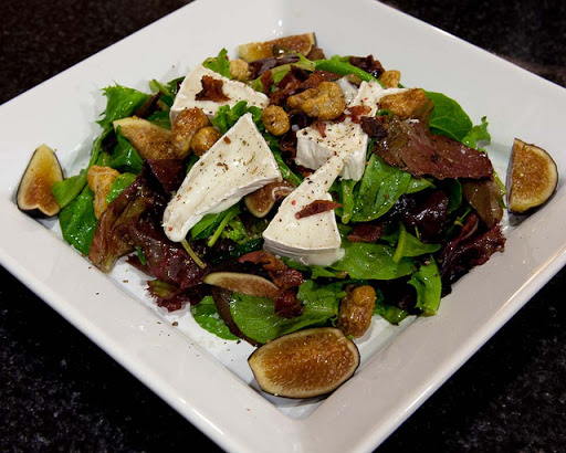 Cut the stems off the figs, rinse them and cook, covered, over medium heat with the port and sugar about 10 minutes. Drain figs and set aside. Cool and slice. Save the liquids. In glass measuring cup, microwave hazelnuts on high 1 minute. Stir. Repeat 1-2 minutes more or until the nuts have toasted. Cool and chop. Reheat the cooking liquid over low heat and stir in the vinegar, shallot, cheese, oil and seasonings. Add the figs and cook and stir until the cheese has melted. Toss the greens in large salad bowl with the nuts and the warm dressing. Serve immediately.