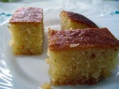 Cover ravani with a towel and let it stay overnight. When ready to serve, cut ravani into diamond shapes and decorate with roasted slivered almonds.