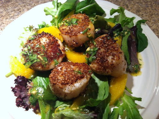 Coriander Scallops with Orange-Ginger Dressing
