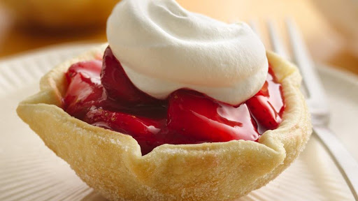 Just before serving, spoon 1 tablespoon fudge topping into each shell. Spoon about 1/3 cup berry mixture into each shell. Garnish each with whipped topping.