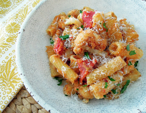 Maybe it’s because they’re both white, or perhaps it’s because they both tend to take in flavors from their surroundings, or maybe it’s because they both have a strong affinity for cheese. Whatever the reason, people just don’t put pasta with cauliflower often enough. And by “people” I mean people other than me. I do it … a lot.