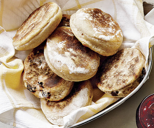 Cinnamon-Raisin English Muffins: Increase the honey to 2 Tbs. and add 1/2 cup raisins and 1 tsp. ground cinnamon to the dough after stirring in the bread flour.