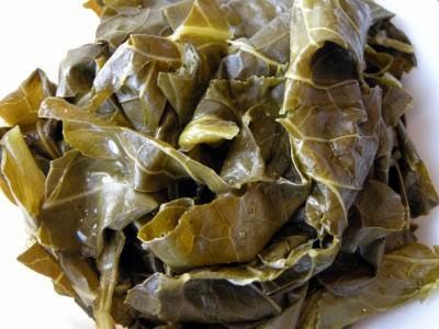 - Rinse greens well. Remove spines and chop coarsely, place in pot. Add all other ingredients and bring to a boil. Reduce heat and simmer until collards are tender, about two hours, adding more water if
