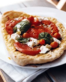 9.Spread a round with 2 tablespoons pesto. Top with a layer of tomatoes, 2 to 3 tablespoons burrata, and basil; season to taste with salt and pepper.