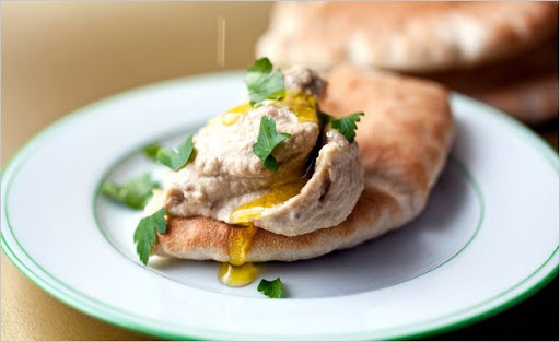 4. Mound the puree in a bowl or on a platter, and drizzle with olive oil. Sprinkle with parsley. Serve with pita bread.