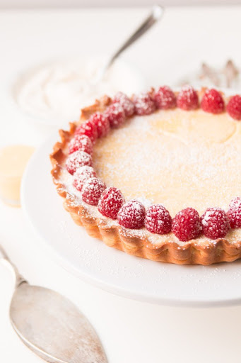 Spread the cream cheese mixture into the tart shell then add teaspoon dollops of lemon curd all over the cheesecake, using ½ cup of the lemon curd. Use a knife to swirl the mixture and bake for 20 minutes.