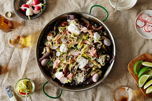 Remove and top with onions, spiced sour cream, radishes and whatever else you enjoy.