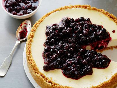 Set the cheesecake pan on a large piece of aluminum foil and fold up the sides around it. Place the cake pan in a large roasting pan. Pour boiling water into the roasting pan until the water is about halfway up the sides of the cheesecake pan; the foil will keep the water from seeping into the cheesecake. Bake for 45 minutes. The cheesecake should still jiggle (it will firm up after chilling), so be careful not to overcook. Let cool in pan for 30 minutes. Chill in the refrigerator, loosely covered, for at least 4 hours. Loosen the cheesecake from the sides of the pan by running a thin metal spatula around the inside rim. Unmold and transfer to a cake plate. Using a spatula spread a layer of Warm Lemon Blueberry topping over the surface.