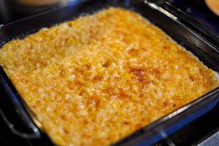 When the corn pudding is set and browned on top, remove from oven. Serve warm!