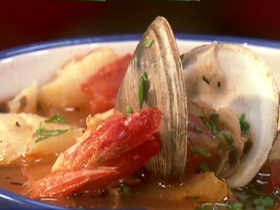 Stir in scallops, fish pieces and cook for 5 minutes. Add shrimp and clams. Cook for 5 more minutes. Stir in lemon juice. Ladle into bowls and sprinkle with parsley and serve with crusty bread.