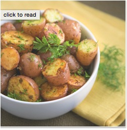 4. Transfer potatoes to a large rimmed, non-stick baking pan and place cut side down. Bake at 425° for 20 minutes or until the sides facing the pan are golden. Transfer to a serving bowl, garnish with chopped fresh dill if desired and serve.