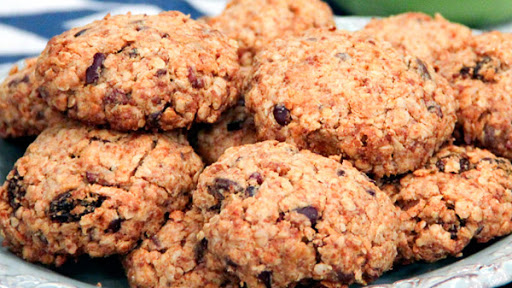 Roll into gold-size balls in your hands, then press flat on cookie sheet lined with parchment paper or greased with coconut oil. Smooth top and form into rounds. Bake until golden, about 20 minutes. Let cool completely before eating.