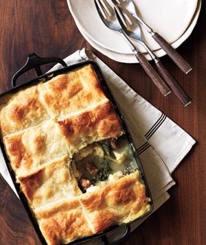 Bake until the pastry is golden and the filling is bubbling, 25 to 30 minutes. Let cool for 5 minutes before serving.