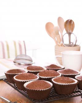 Fill each muffin liner three-fourths full with batter. Bake 12 to 15 minutes, until the tops of the muffins are lightly browned and a toothpick comes out clean when inserted in the center. Turn the muffins out on a cooling rack.