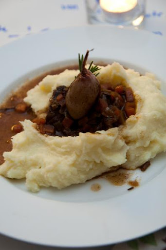 Add the meat, carrots, shallots and mushrooms to the hot, thickened sauce and simmer for about ten minutes, to be sure everything is piping hot. Scatter with chopped parsley and serve with buttery mashed potato.