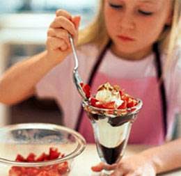 Make more sundaes in the same way. Serve them right away! Serves 4.