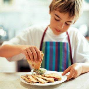 Ask an adult to help you remove the cookie sheet from the oven and place it on a wire cooling rack. Let the quesadilla cool for a couple of minutes.