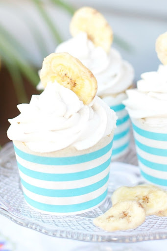 Because of the banana, this frosting is best used the day it is made. Once cupcakes are cool, frost and serve.