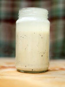 Put 1/3 cup of natural yogurt, 2 tablespoons of white or red wine vinegar, and 1 tablespoon of extra virgin olive oil into a jam jar with a pinch of sea salt and freshly ground black pepper.