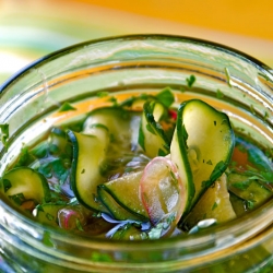 - 1/2 pound pickling cucumbers, halved lengthwise and thinly sliced (5 baby cucs)