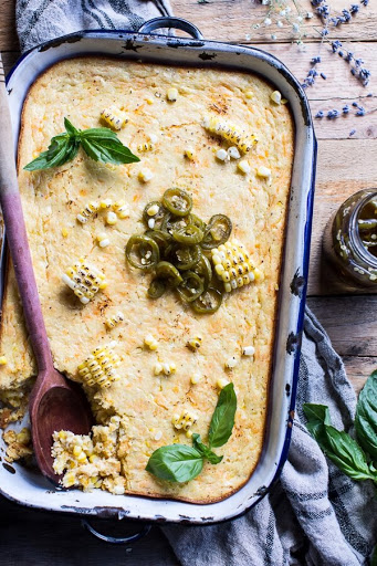 Sweet Kentucky Bourbon Corn Pudding with Candied Jalapeños