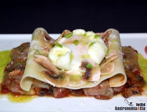 LASAÑA DE HONGOS CON HUEVO POCHÉ