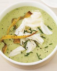 • Crème fraîche, fried tortilla strips and finely chopped chives, for garnish