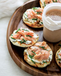 In a bowl, combine the cream cheese, shallot, chopped chives, capers and lemon juice. Season with salt and pepper.