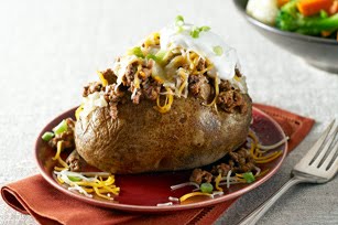 CUT slits in tops of potatoes; top with meat mixture and remaining ingredients.