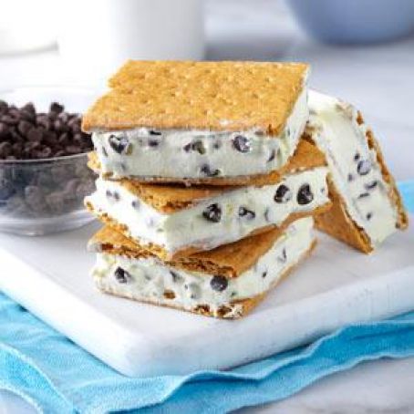 Place 24 graham crackers on a baking sheet; top each with about 3 tablespoons filling. Place another graham cracker on top. Wrap individually in plastic wrap; freeze for 1 hour or until firm. Serve sandwiches frozen. Yield: 2 dozen.