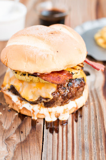 Spread the pina colada mayo on each side of the bun. Place the burger, pineapple and bacon on the bottom and top with the lid. Enjoy!