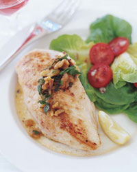 Stuffing chicken breasts with goat cheese doesn't seem like a particularly healthy approach. But by using only a small amount of goat cheese and mixing it with chopped walnuts and lemon zest, Annie Wayte creates a dish that's both nutritious and delicious.