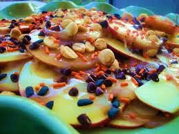 Meanwhile, in a large saucepan, melt marshmallows and butter. Arrange apple slices on a large platter. Drizzle with caramel; top with marshmallow mixture. Sprinkle with peanuts, chocolate chips and sprinkles. Serve immediately.
