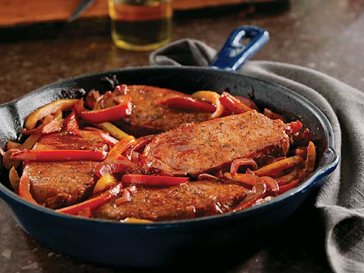 In a large nonstick skillet over medium heat, warm oil. Sprinkle chops with salt and pepper and cook until browned, 3 to 4 minutes per side. Remove chops to a plate and set aside.