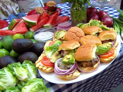 Serve the burgers on the buns with cheese, lettuce, tomato, thinly sliced red onions and avocado. Garnish with the Cilantro Mayonnaise.
