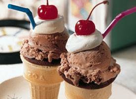 1.Heat oven to 350°F. Place cones unpright in medium muffin cups, 2 1/2x1 1/4 inches, or rectangular pan, 13x9x2 inches. Mix flour, sugar, malted milk powder, cocoa, baking soda and salt in medium bowl. Beat oil, vinegar and vanilla with wire whisk. Stir oil mixture and water into flour mixture about 1 minute or until well mixed. Pour batter into cones, filling each to within about 1 inch of top.