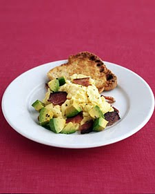 Transfer to a plate. Crumble bacon over top; sprinkle with avocado. Serve with toast, if desired.