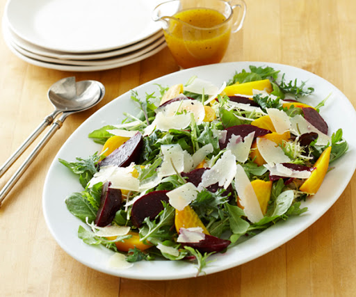 Using a combination of red and golden beets for this salad makes it visually stunning as well as delicious. The vanilla-citrus vinaigrette is simple to make and great as a sauce for grilled fish or chicken.