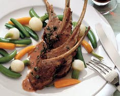 Carve racks into chops and place four to a plate. Drizzle sauce around and serve with seasonal vegetables.