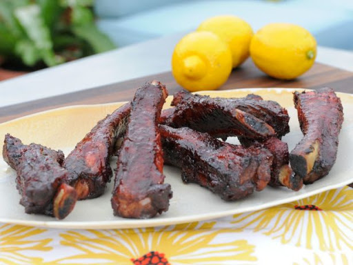 Remove the ribs from the marinade (discard the marinade) and place onto a wire rack. Place the rack directly on the cooler side of the grill. Cook until the meat is very tender, basting with the reserved marinade 3 times during the cooking process, 2 to 3 hours. Or put in a crockpot for 6 hours on low.