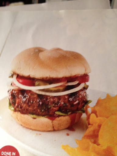 Spread the buns with the reserved ketchup mixture. Drain the onion rings. Serve the patties on the buns; top with the onion, lettuce, tomato and pickles. Serve with sweet potato chips, if desired.