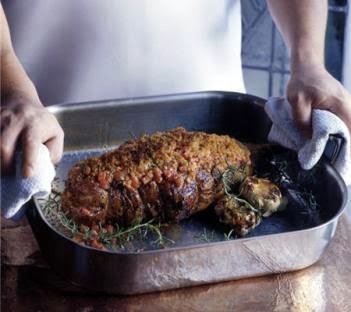 ROASTED LEG w/HERBED TOMATOES