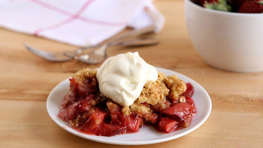 Slow Cooker Strawberry Rhubarb Crisp is a great dessert to make when you are short on time. Just put it in the slow cooker and done! This dessert is even more delicious topped off with whipped cream or a scoop of ice cream.